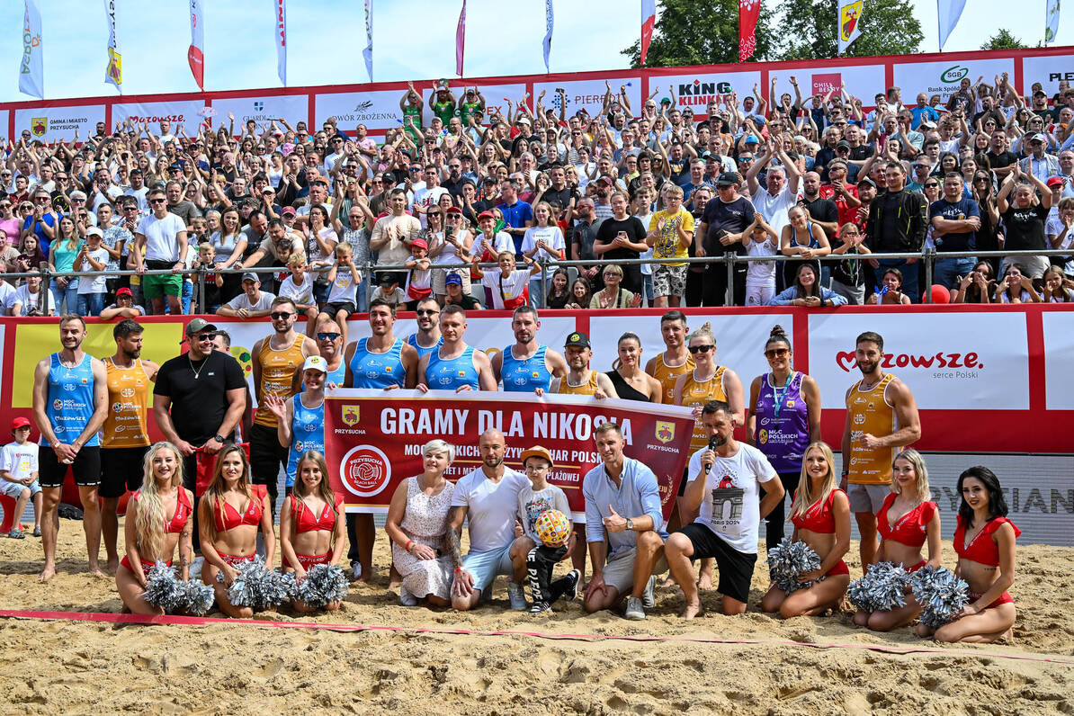Organizatorzy zawsze dbają również, by oprócz samej siatkówki plażowej na najwyższym poziomie, kibice mogli się doskonale bawić, a przy okazji pomogli potrzebującym. Tradycyjnie w Przysusze odbył się wyjątkowy mecz gwiazd, w którym udział wzięli m.in. lekkoatleci Natalia i Konrad Bukowieccy, siatkarka plażowa Kinga Wojtasik (wcielili się w role sędziów), a także siatkarze halowi Joanna Wołosz, Michał Kubiak, Łukasz Kaczmarek, Dawid Konarski, Łukasz Wiśniewski, Jakub Bucki. Co więcej, trenerami drużyn byli Norbert Huber i Mateusz Bieniek, czyli siatkarscy wicemistrzowie olimpijscy z Paryża. Zabawa była przednia, ale nie zabrakło też licytacji, z których zysk zostanie przekazany na na leczenie chorującego na białaczkę, 8-letniego Nikodema Jonakowskiego.