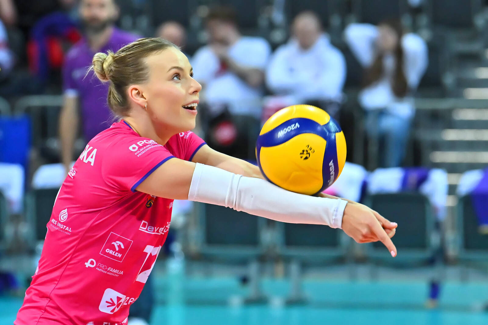 Tak i to cieszy. Ja bym też sobie życzyła i oczywiście swojej rodzince, żeby w Elblągu dużo takich rzeczy się działo. Myślę, że oni są z tego zadowoleni i na pewno to jest fajne dla promocji miasta. Miasto Elbląg zasługuje na coś takiego, na jakąś drużynę ekstraklasową i wydaje mi się, że chociażby to, że Barkom gra teraz w Elblągu, to powoduje, że ludzie mają gdzie wychodzić, zobaczyć sport na wysokim poziomie i obejrzeć w akcji dużo fajnych osobistości, chociażby takich jak nasi reprezentanci, więc na pewno to jest fajne. No i dla nas to też jest super okazja, szczególnie dla mnie. Mam nadzieję, że będę mogła znowu pojechać do Elbląga, zobaczyć się z rodziną, bliskimi i przed nimi wystąpić, więc to jest dla mnie podwójny zaszczyt.