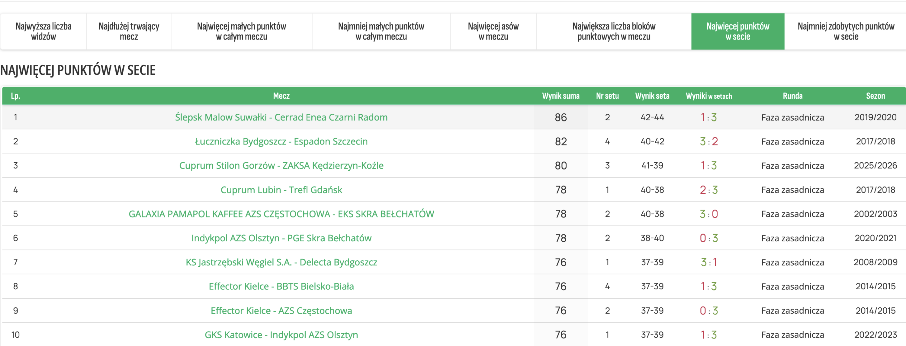 W trzecim secie szukając zmian trener Hubert Henno desygnował do gry Mateusza Maciejewicza. Nic jednak nie wskazywało, że będą w hali jeszcze wielkie emocje, bo po kolejnej dłuższej akcji zwieńczonej zagraniem Kamila Rychlickiego, ZAKSA prowadziła 12:8. Gdy kolejną dobra zmianę w meczu zanotował Mateusz Rećko było (18:22) i wydawało się, że jest po meczu. Ale kolejny raz w tym sezonie ZAKSA nie umiała domknąć meczu. Błędy przyjezdnego zespołu wykorzystali rywale, doprowadzając do końcówki rozstrzyganej na przewagi (24:24). Końcówkę lepiej przetrzymali gracze Cuprum Stilonu, kończąc seta i 51-minutową walkę w tej odsłonie punktowym blokiem (41:39). Był to trzeci w historii PlusLigi najdłuższy set pod względem wyniku!